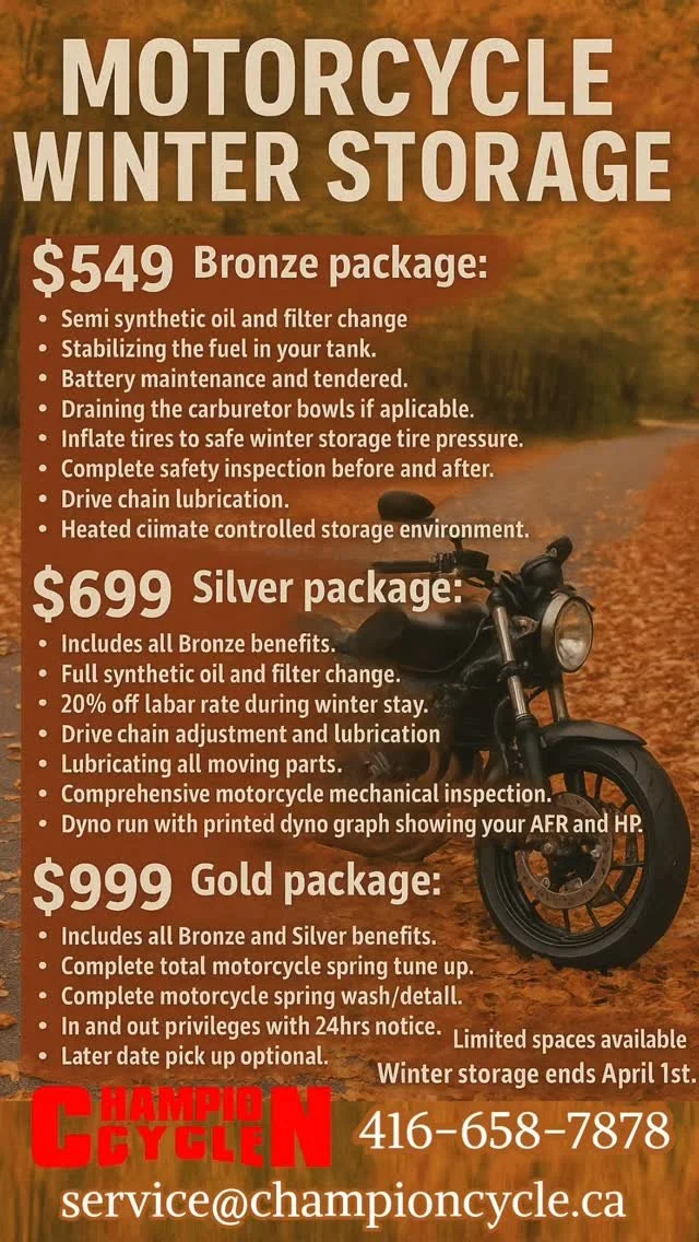 We are riders first. As riders we are all faced with one difficult decision "who can we trust to take care of our prized possessions as much as we do". Well over a decade ago, we as well had to make that decision, hence the birth of Champion Cycle. Having a background in aircraft mechanical engineering as well as a motorcycle mechanic certification, the decision and transition came as second nature. The vision to provide affordable, honest, and quality service was and always will be our priority. Over the years thanks to our countless factory training certifications, our proprietary performance product accreditations, and our state of the art facility we are able to provide exceptional service while still maintaining our vision. We have become an industry leader in high performance. We service all make and models, specializing in everything on two wheels, from the serious racer to the street rider. We have dedicated our time to bring you, the rider, the results you are searching for.