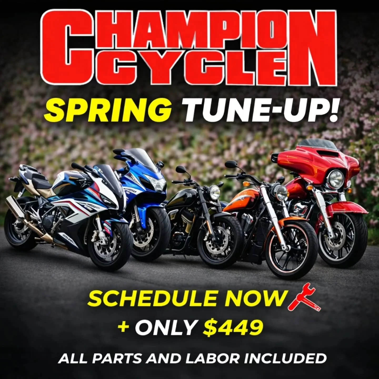 We are riders first. As riders we are all faced with one difficult decision "who can we trust to take care of our prized possessions as much as we do". Well over a decade ago, we as well had to make that decision, hence the birth of Champion Cycle. Having a background in aircraft mechanical engineering as well as a motorcycle mechanic certification, the decision and transition came as second nature. The vision to provide affordable, honest, and quality service was and always will be our priority. Over the years thanks to our countless factory training certifications, our proprietary performance product accreditations, and our state of the art facility we are able to provide exceptional service while still maintaining our vision. We have become an industry leader in high performance. We service all make and models, specializing in everything on two wheels, from the serious racer to the street rider. We have dedicated our time to bring you, the rider, the results you are searching for.
